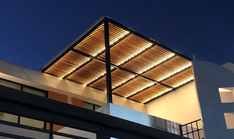 Pérgolas de aluminio que ofrecen sombra y elegancia, perfectas para jardines y terrazas, con acabados en varios colores y líneas.
